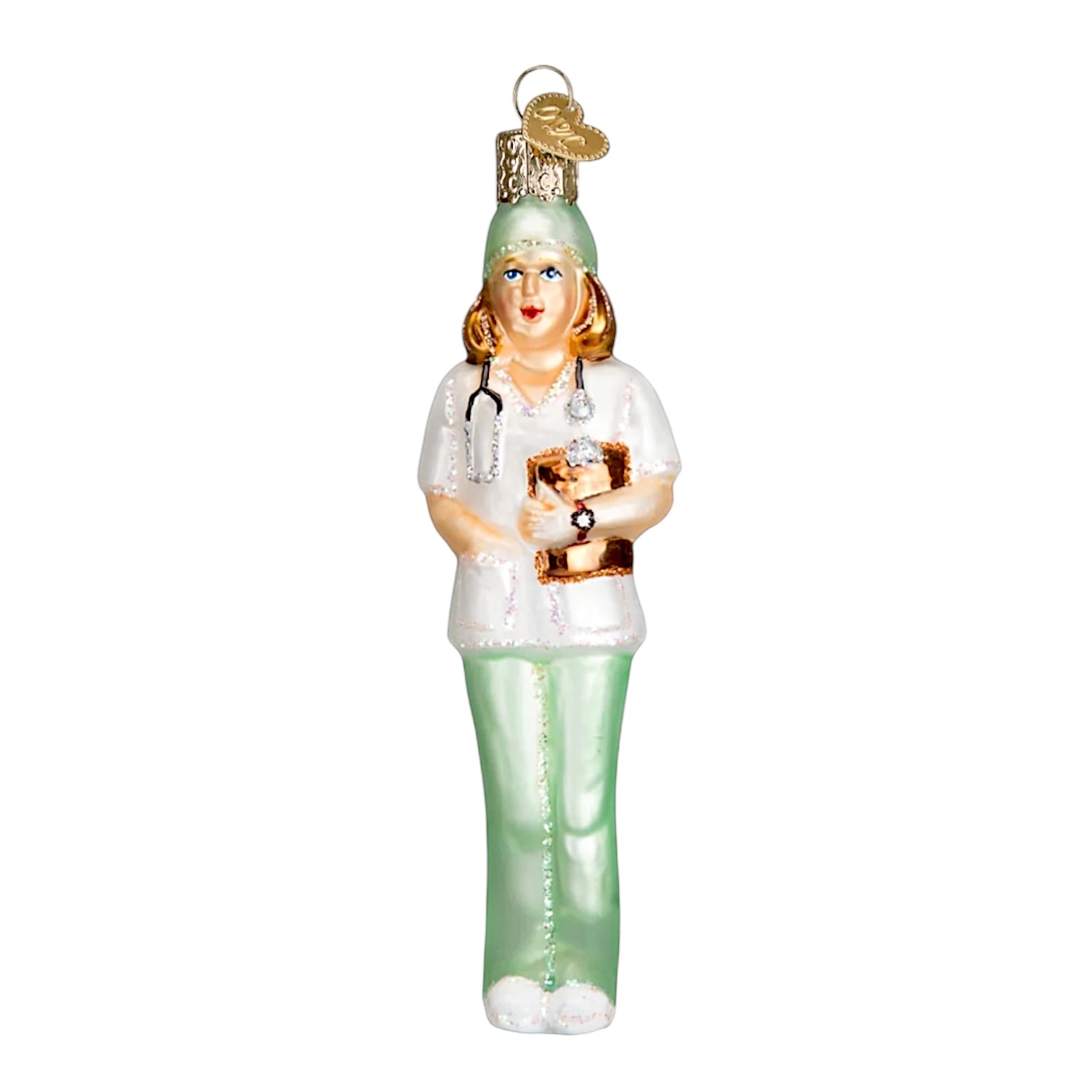 A nurse in the Christmas tree! A heartfelt tribute to those who care: this ornament features a nurse in uniform with a medical chart, stethoscope, and a kind smile. This ornament symbolises dedication, compassion, and the true heart of healthcare. A meaningful piece for those in the profession or as a thank-you gift.