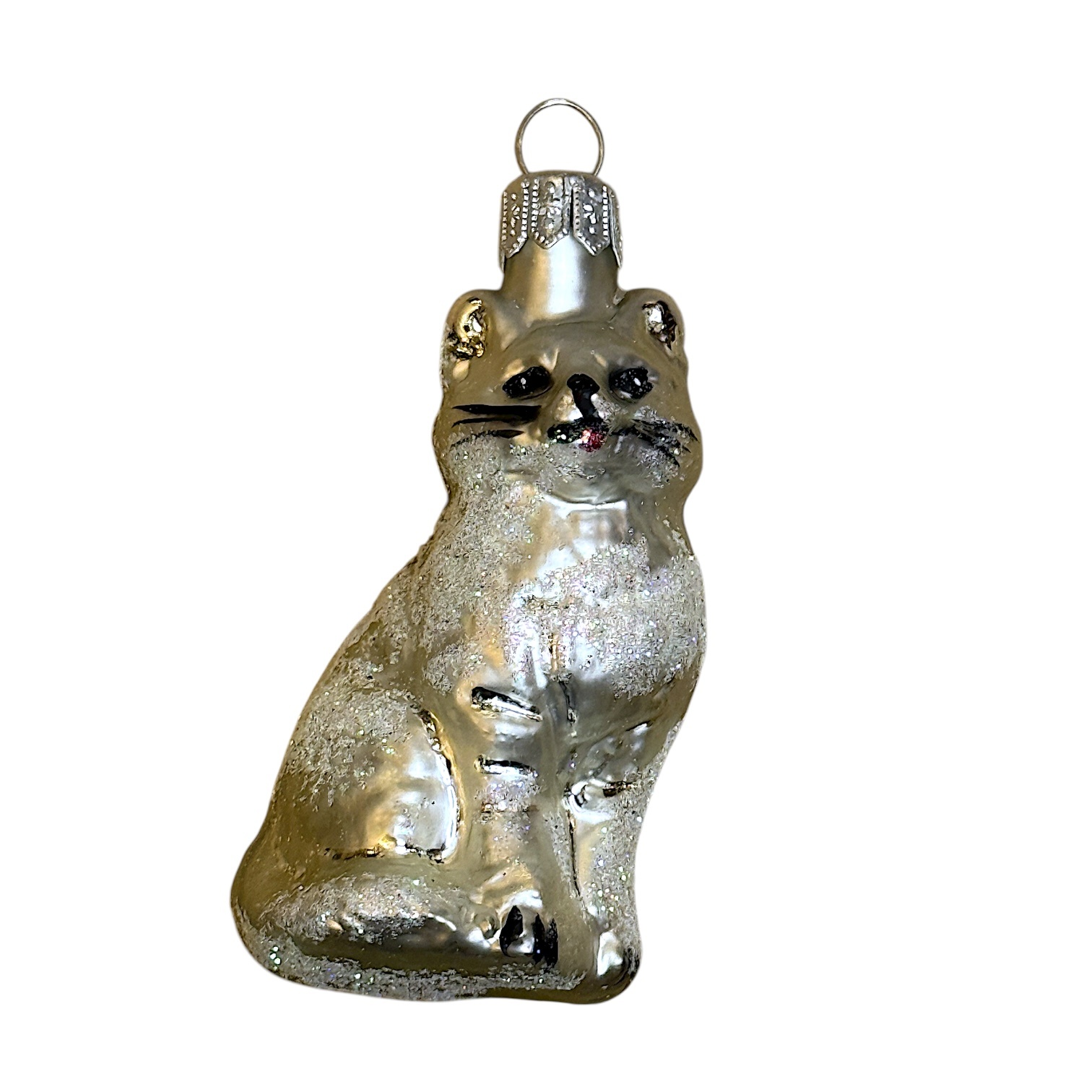 Little cat in the Christmas tree! Beautiful mouth blown glass cats for a festive Christmas tree. A symbol of independence and comfort. Add a touch of curiosity and playfulness to your Christmas decorations with our handmade cat bauble. This cute and playful ornament is ideal for anyone who loves cats and wants to add a sweet touch to their holiday celebrations. A wonderful gift for cat owners, animal lovers, or anyone who appreciates the subtle and gentle presence of cats.