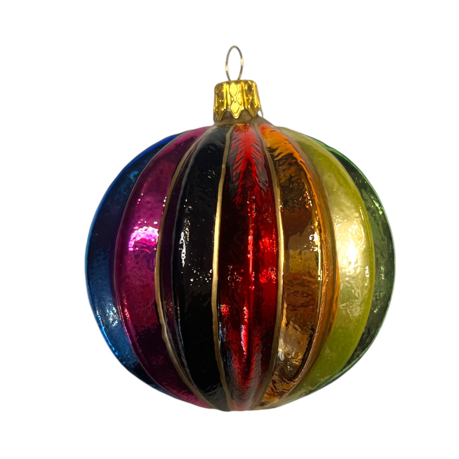 Christmas decorations in beautiful thick and richly coloured hand-painted glass.
