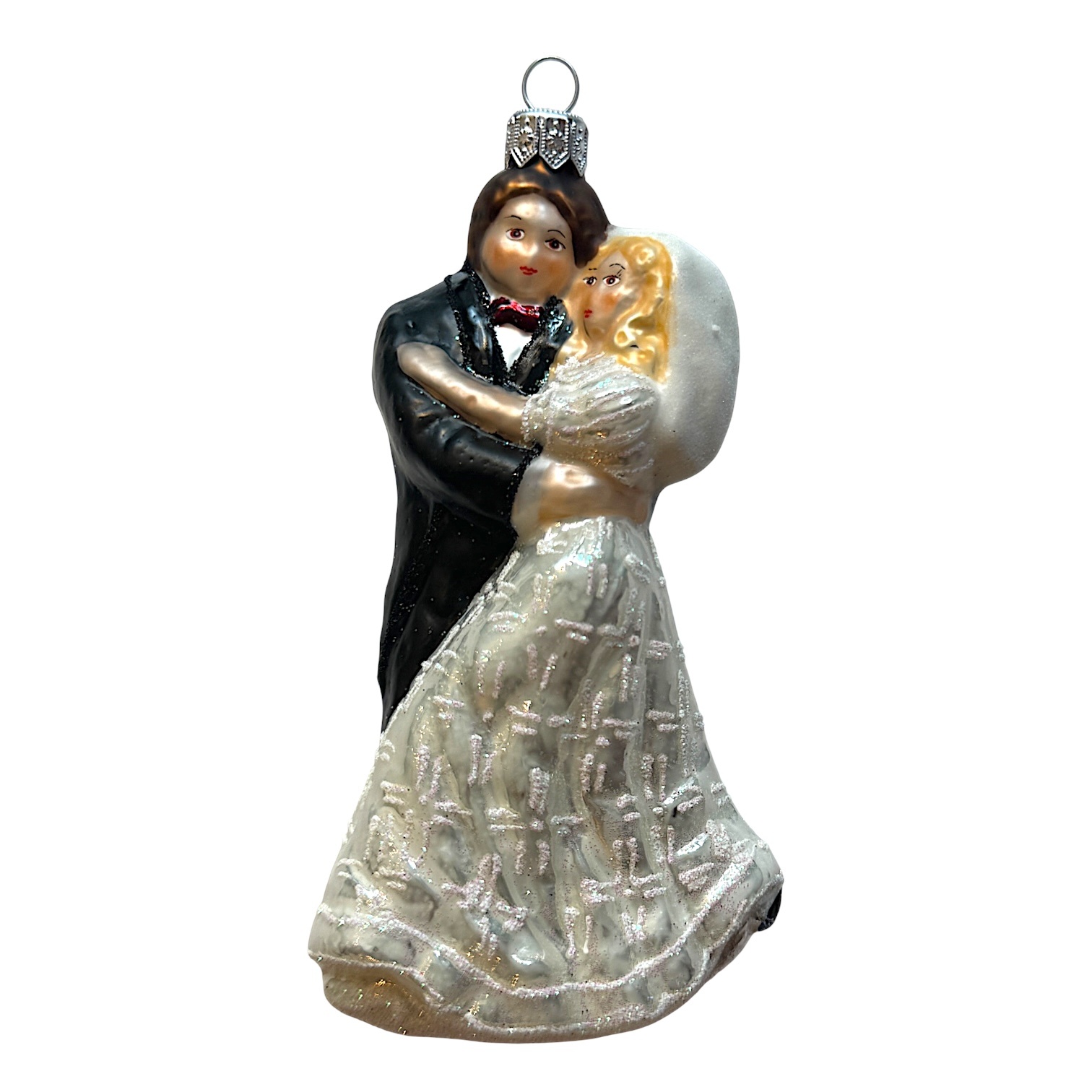 Bruidspaar kerstbal. Kerstversieringen van prachtig dik en kleurrijk glas, met de hand beschilderd.