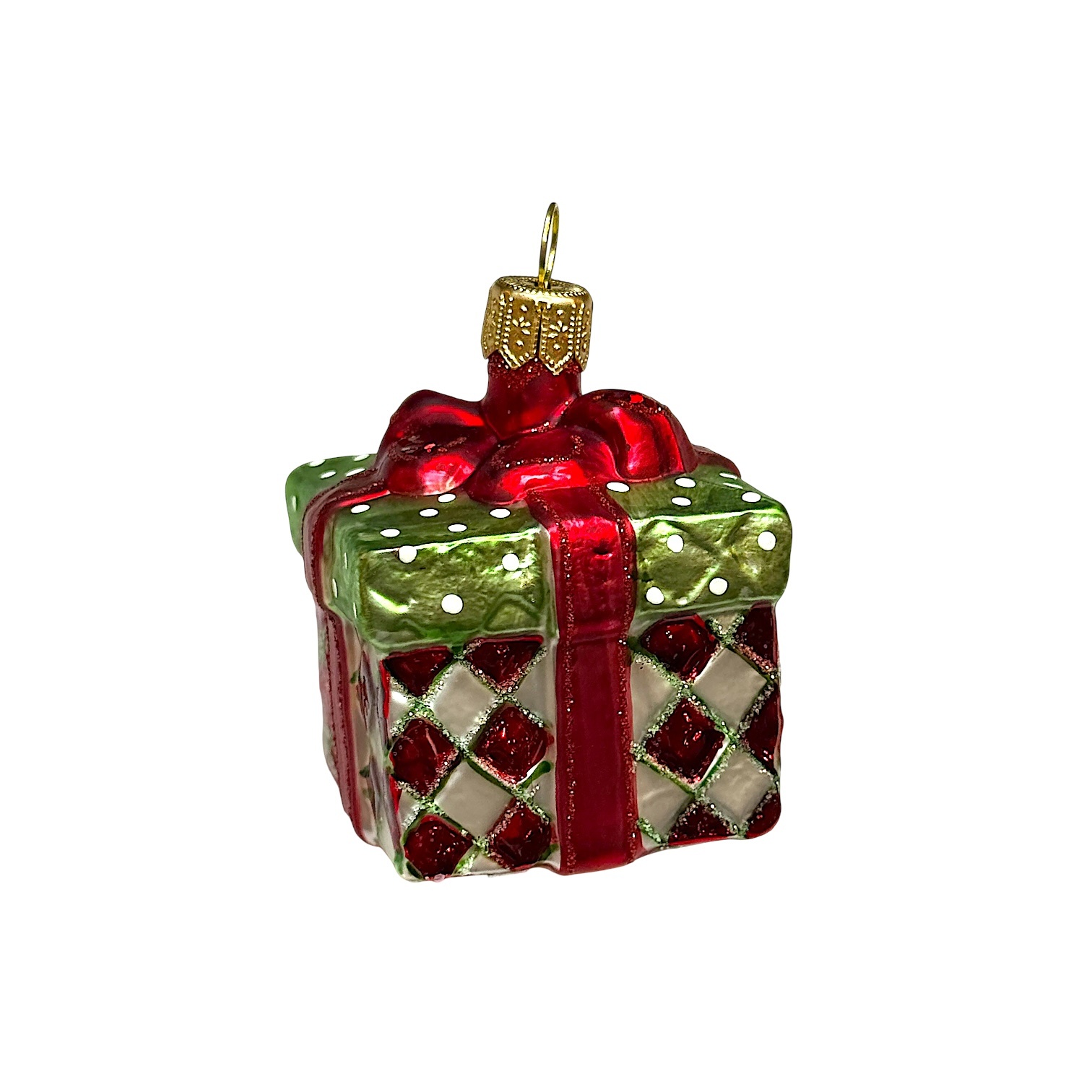 Cadeautje kerstbal. Kerstversieringen van prachtig dik en kleurrijk glas, met de hand beschilderd.