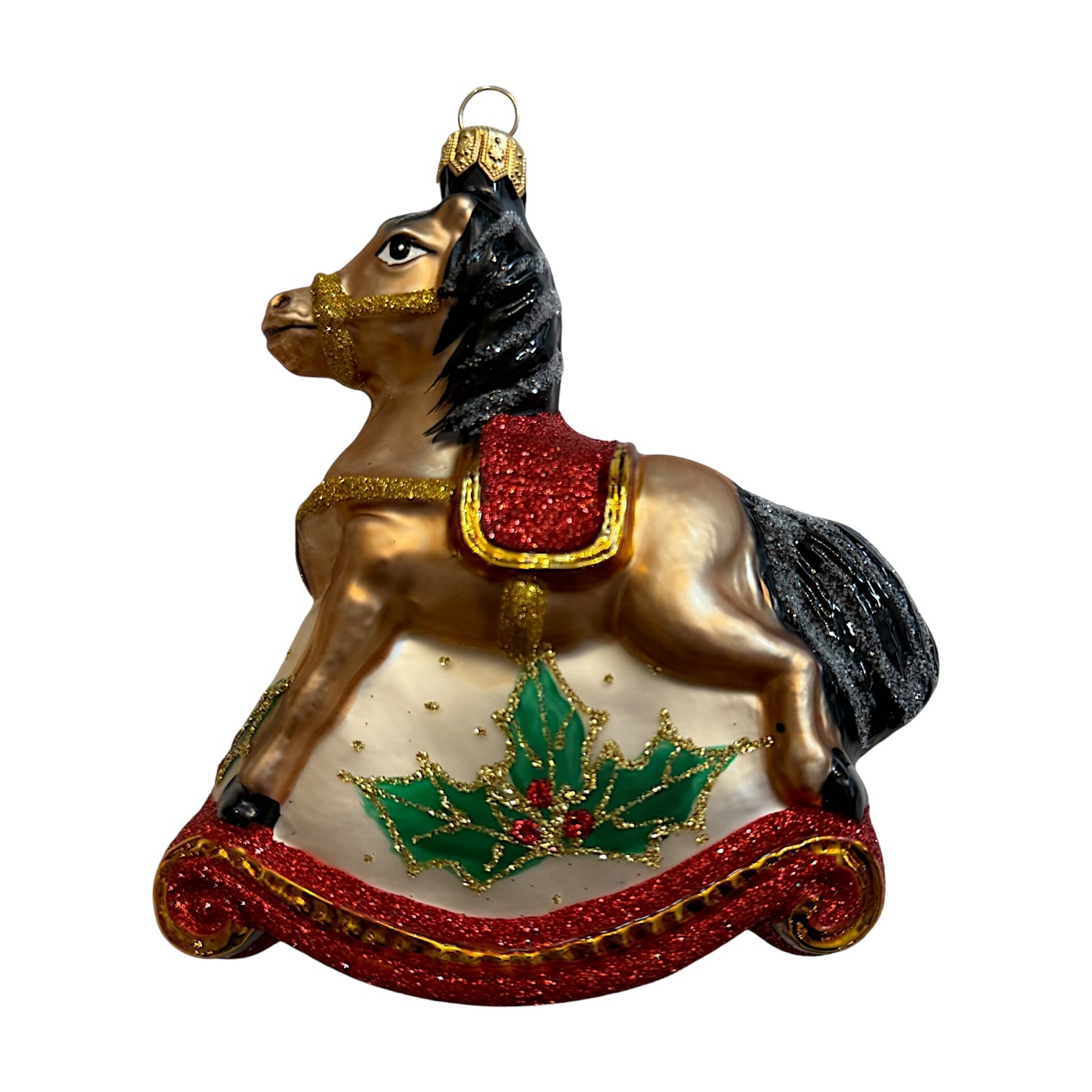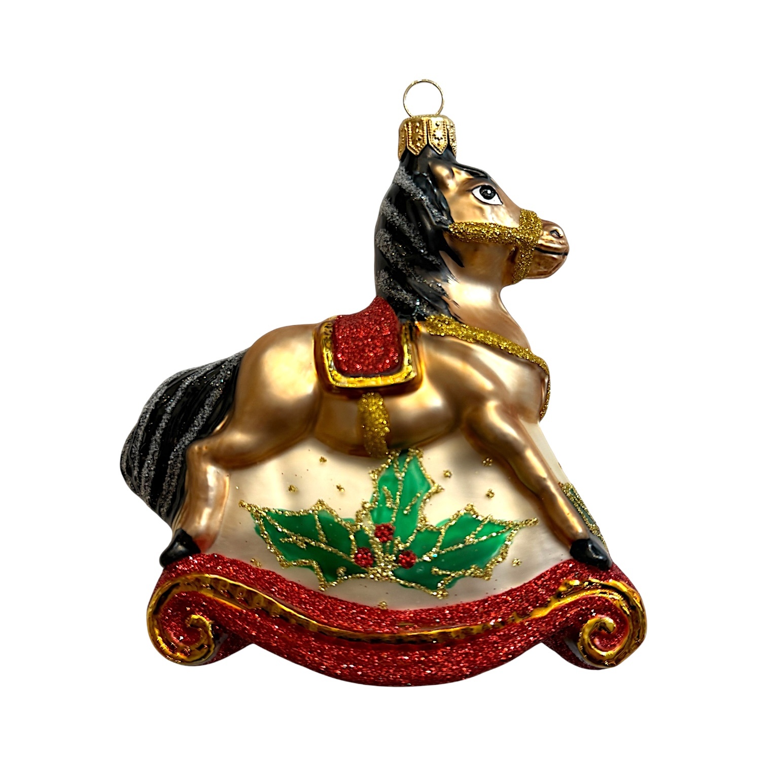 Nostalgisch hobbelpaardje voor in de kerstboom! Een tijdloos symbool van kinderlijke vreugde: het hobbelpaardje. Deze klassieke kerstbal roept herinneringen op aan speelgoed uit vervlogen tijden – met zijn gebogen houten wiegjes, handgeschilderde details en sierlijk gevormde manen. Perfect voor een boom met een nostalgisch, Victoriaans of romantisch thema. Dit ornament past prachtig bij andere traditionele speelgoedfiguren en blijft jaar na jaar een favoriet.