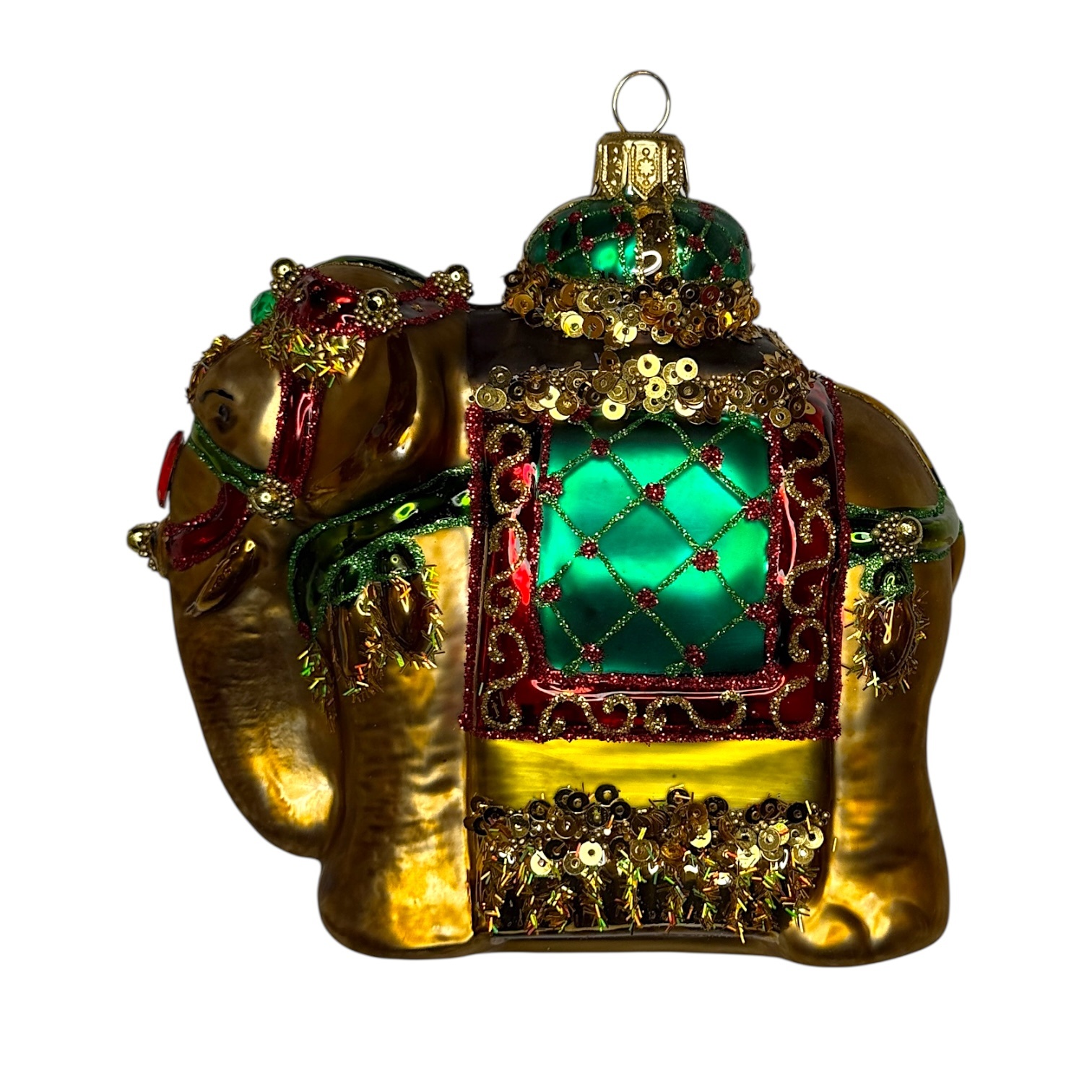 Een olifant in de Kerstboom! Prachtige handgemaakte dieren van glas. Een indrukwekkende kerstbal in de vorm van een rijk versierde Indiase olifant. In de Indiase cultuur staat de olifant symbool voor wijsheid, kracht en bescherming – eigenschappen die perfect passen bij de sfeer van Kerst. Dit ornament is afgewerkt met kleurrijke details en gouden accenten zoals gebruikelijk bij traditionele optochten en tempelvieringen. Deze olifant brengt een vleugje oosterse pracht in je boom.