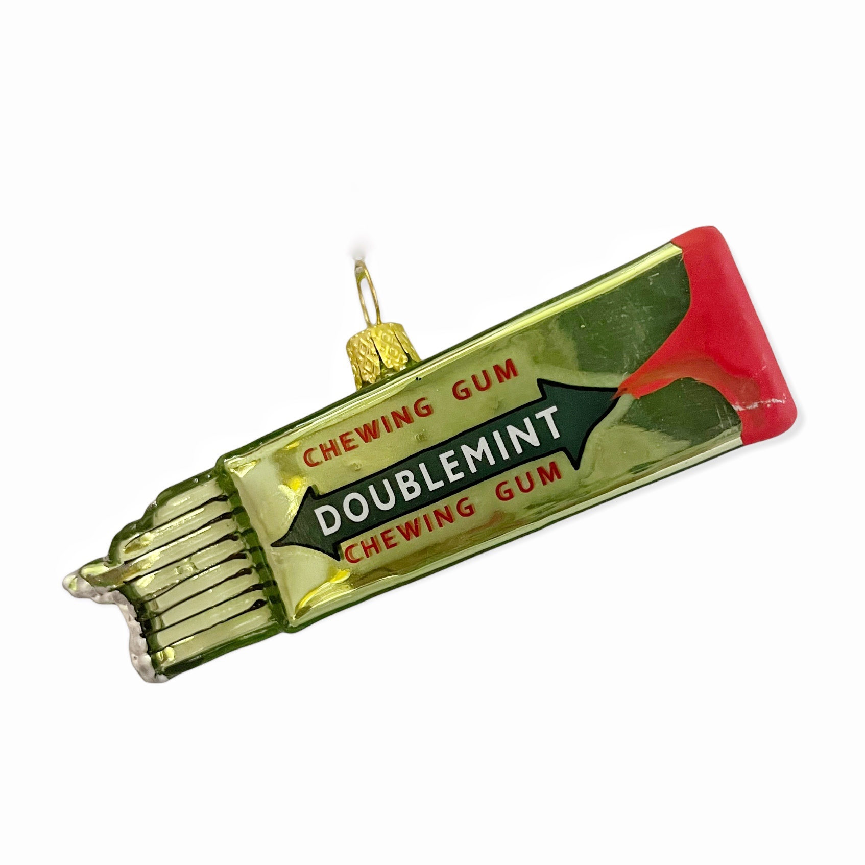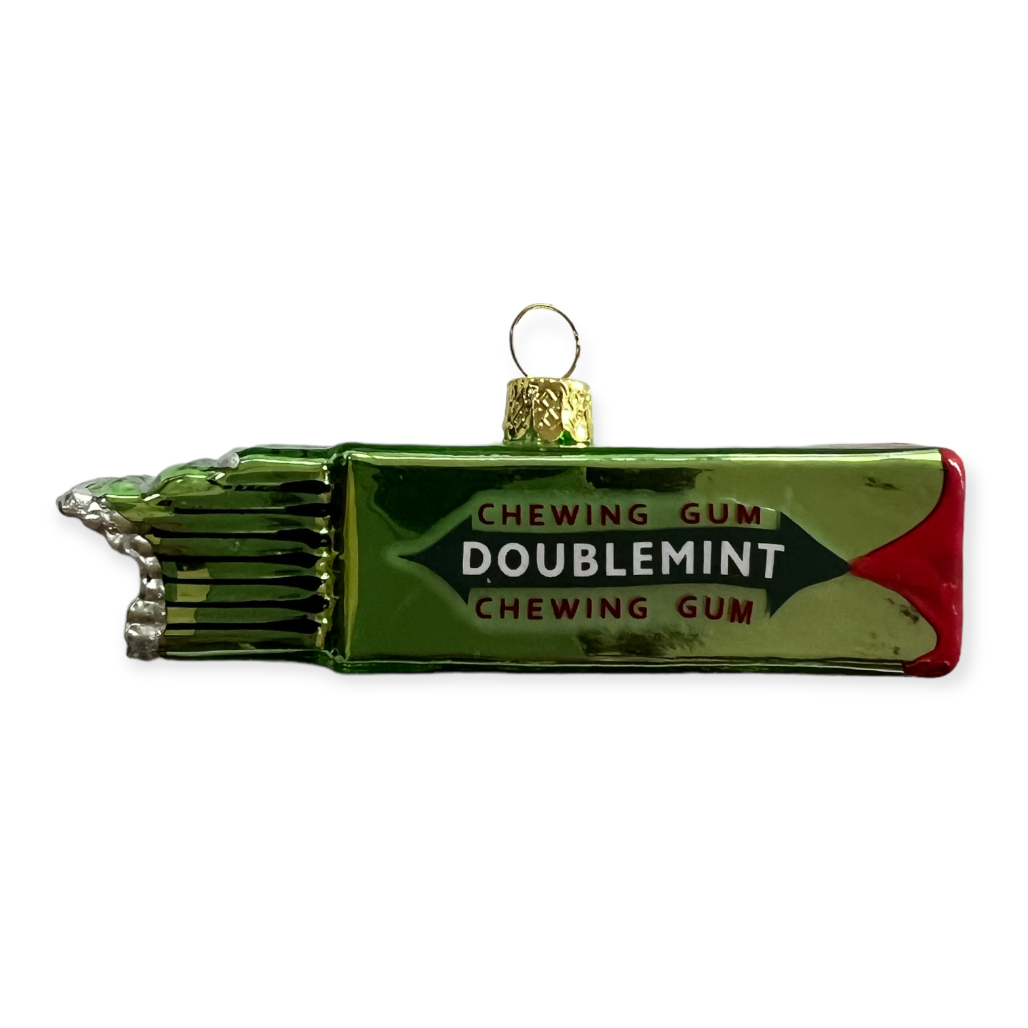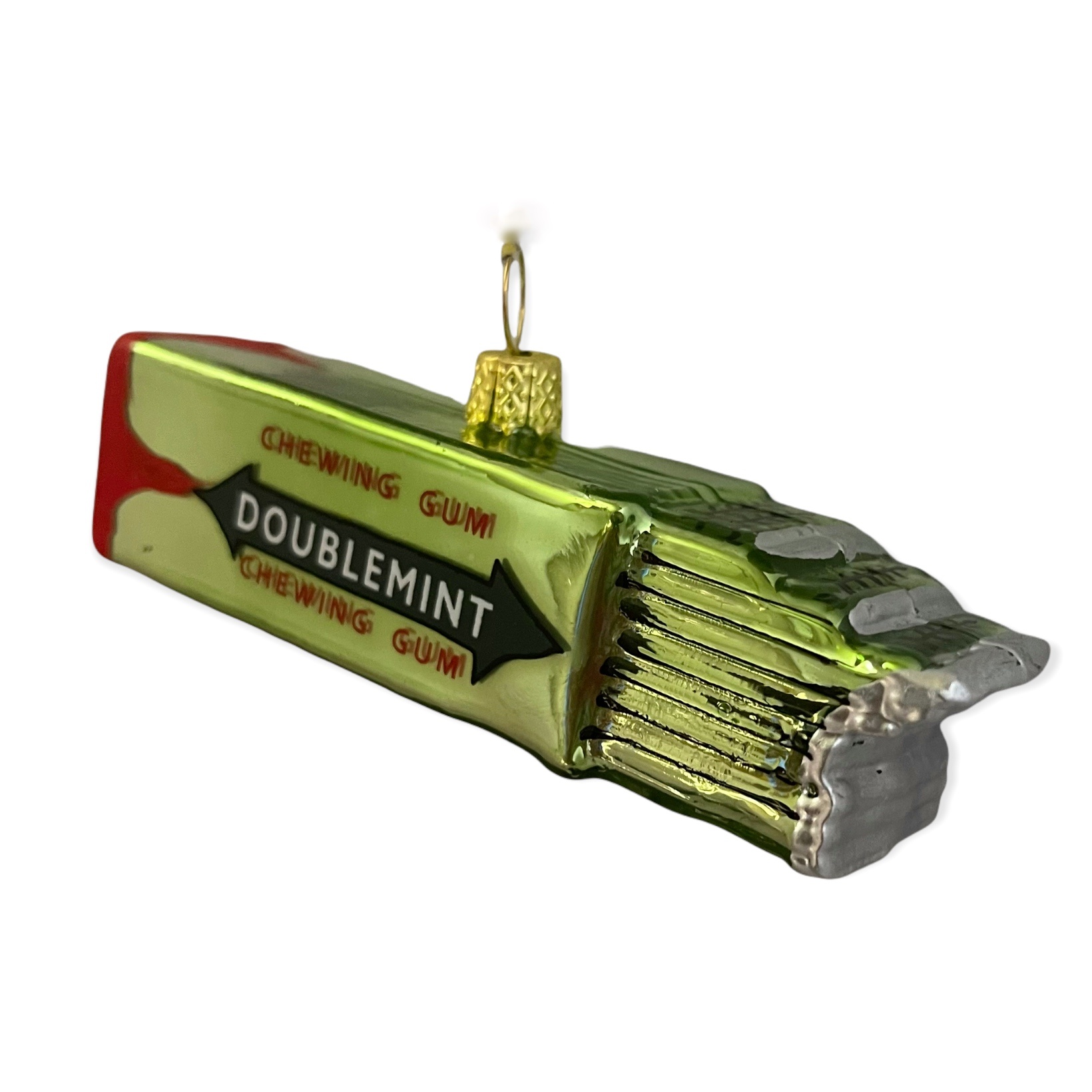 Kauwgom in de kerstboom! Een pakje kauwgom als kerstbal – vrolijk, retro en verrassend herkenbaar. Dit ornament stelt een klassiek kauwgompakje voor met metallic wikkel, speelse typografie en een knipoog naar de jaren ’80 of ’90. Een feestelijk stukje popcultuur voor in de boom: perfect voor wie houdt van kleur, humor of een boom vol snoep- en supermarktornamenten.