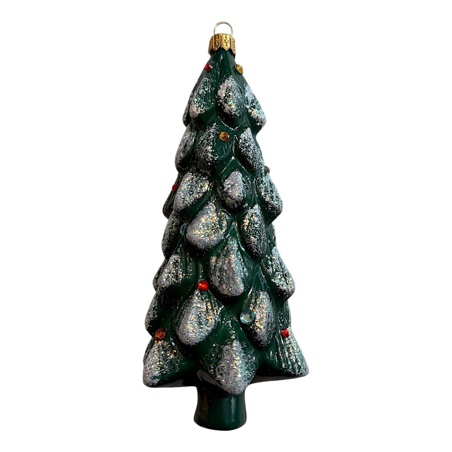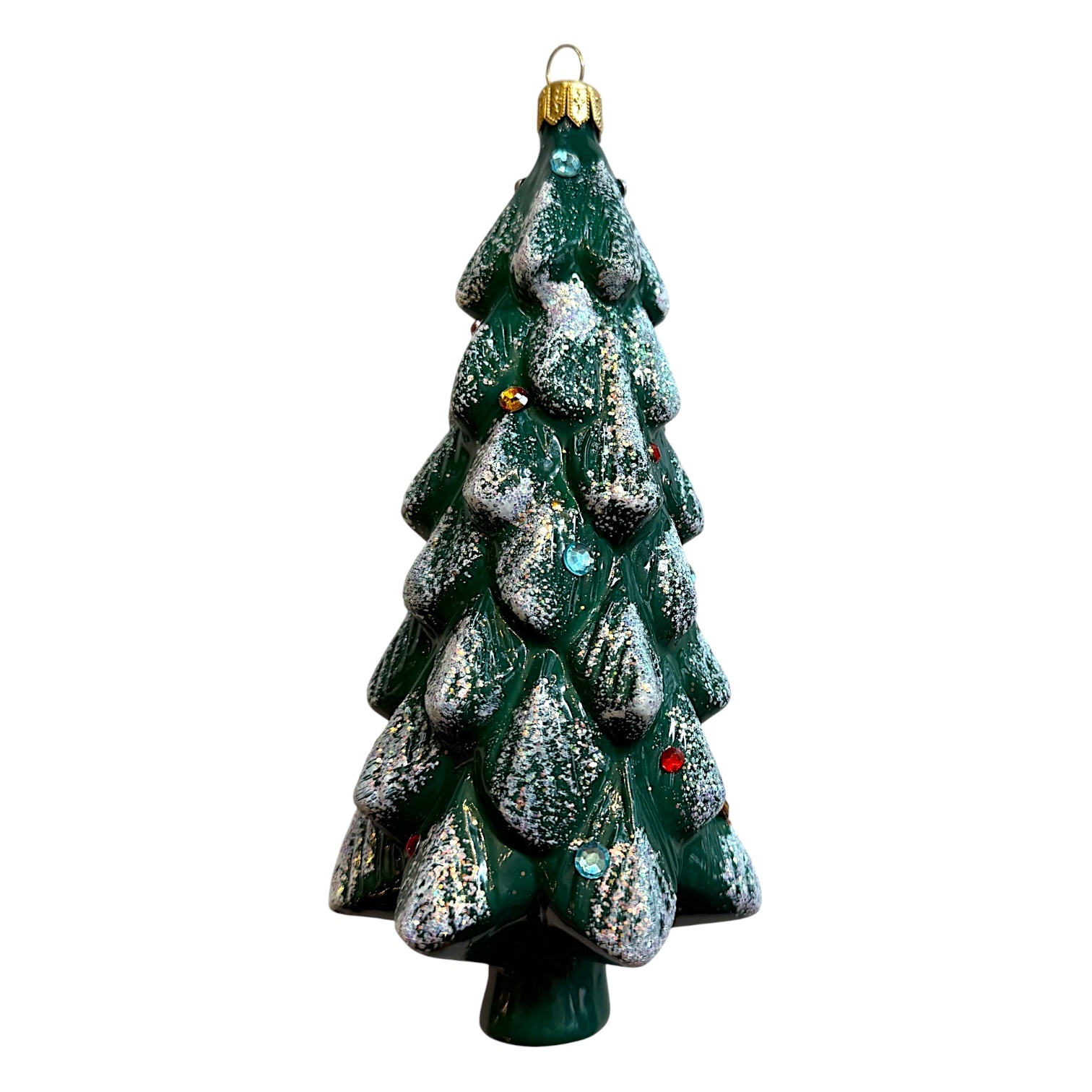 Dennenboom kerstbal. Kerstversieringen van prachtig dik en kleurrijk glas, met de hand beschilderd.
