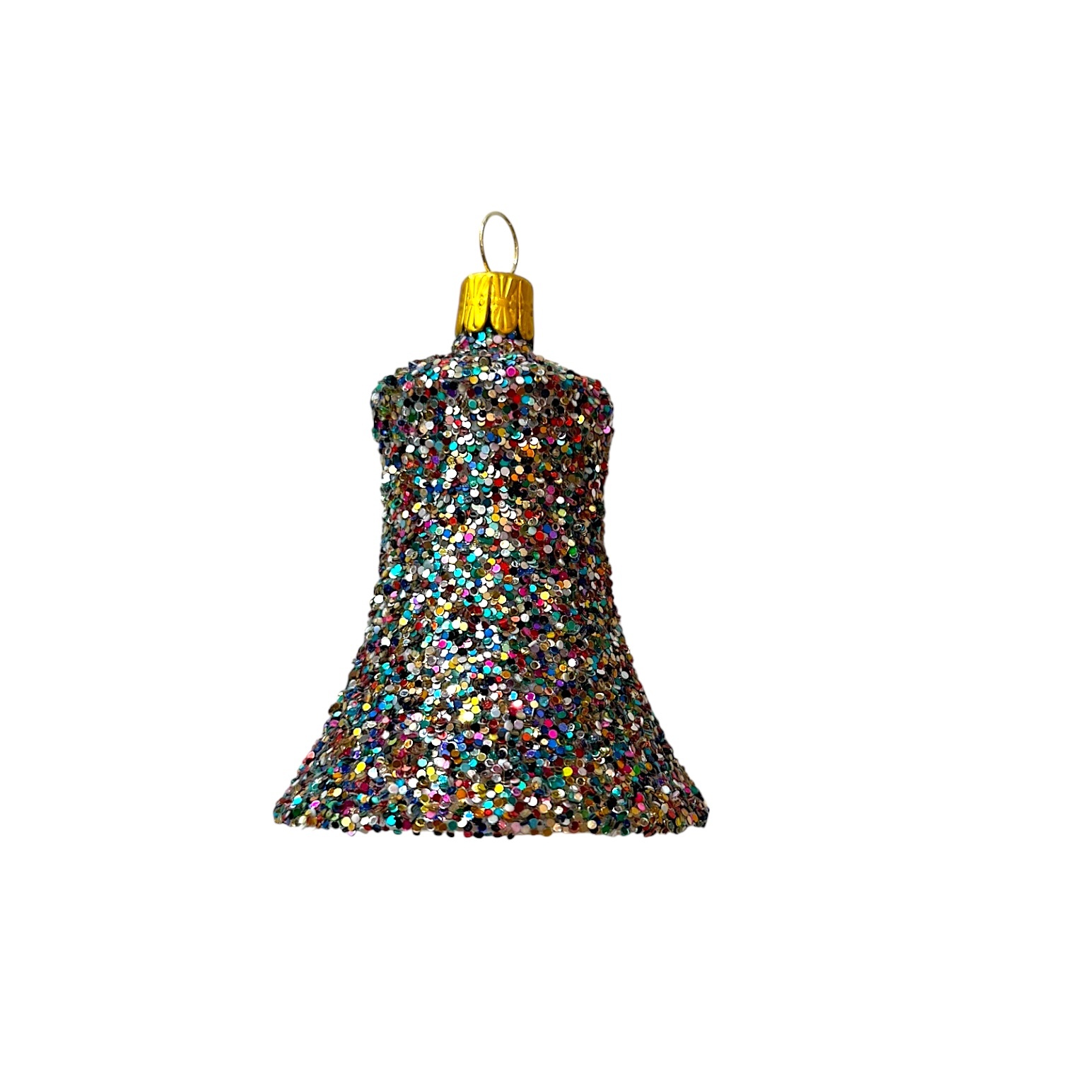 Een feestelijk klokje dat werkelijk straalt: deze kerstbal is volledig bezaaid met een regenboog aan glinsterende glitters. Elke zijde vangt het licht op een andere manier, wat zorgt voor een schitterend fonkelend effect in de boom. Net als bij onze andere klokjes is dit ornament mondgeblazen en voorzien van een echt glazen klepeltje binnenin, dat bij beweging een zacht geluidje kan maken. Een betoverend stuk vakmanschap dat elke boom een vrolijke sprankeling geeft.