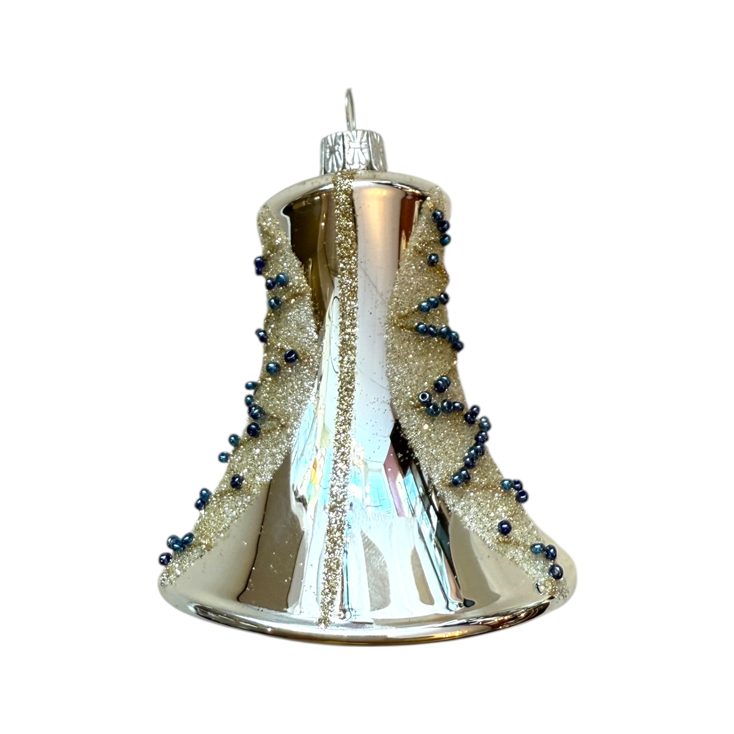 Kerstbal klokje zilver groot. Kerstversieringen van prachtig dik en kleurrijk glas, met de hand beschilderd.