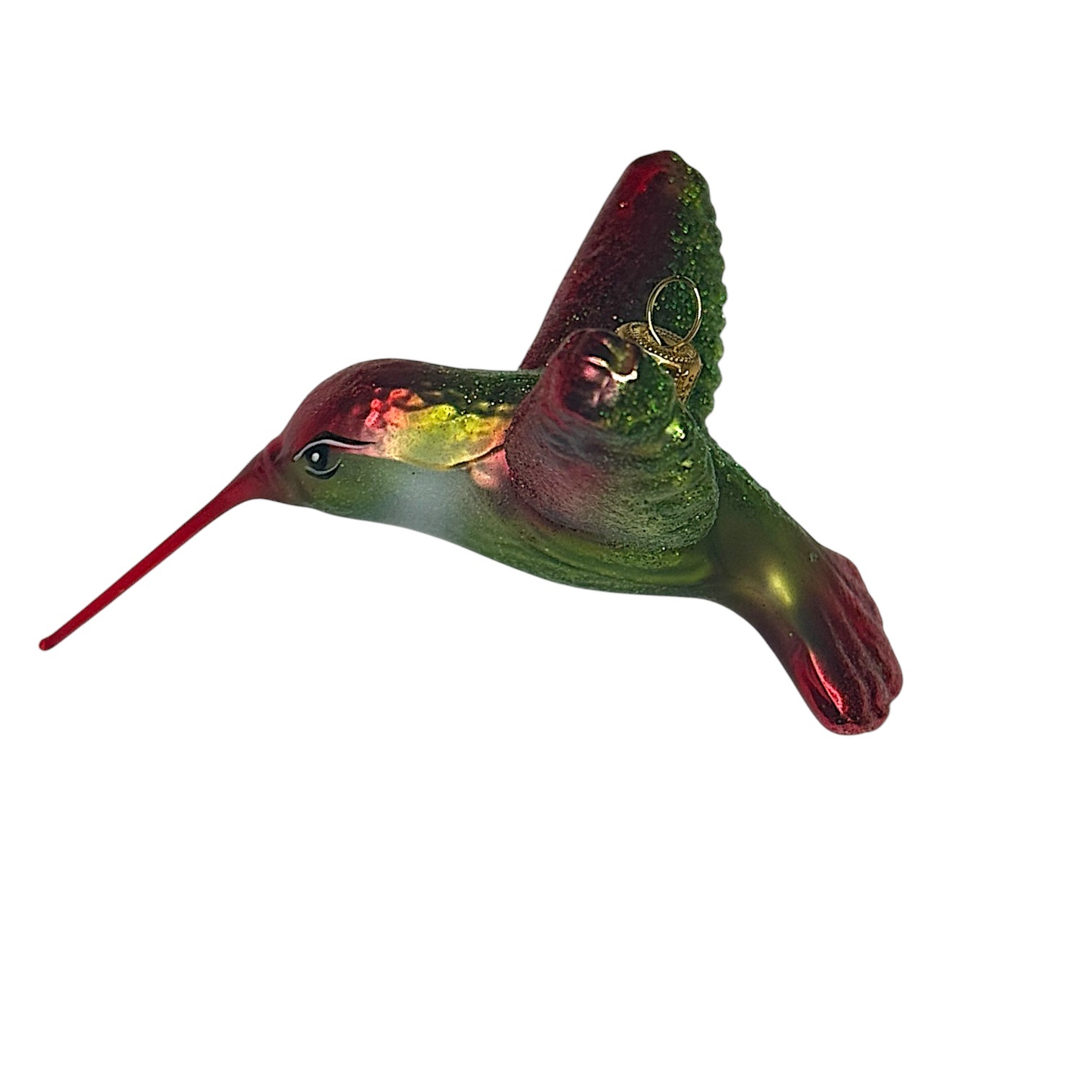 Een kolibrie in de kerstboom! Als symbool van vreugde en geluk mag een vogel in de kerstboom niet ontbreken. Voeg lichtheid en kleur toe aan je kerstboom met deze handgemaakte glazen kolibrie. Met een sierlijke houding en levendige kleuren staat deze vogel symbool voor schoonheid, vreugde en het wonder van het moment. De kolibrie staat bekend als brenger van geluk, energie en positiviteit – perfect voor de feestdagen. Dit ornament is een elegante blikvanger, ideaal voor natuurliefhebbers, dromers en iedereen die houdt van bijzondere kerstornamenten.