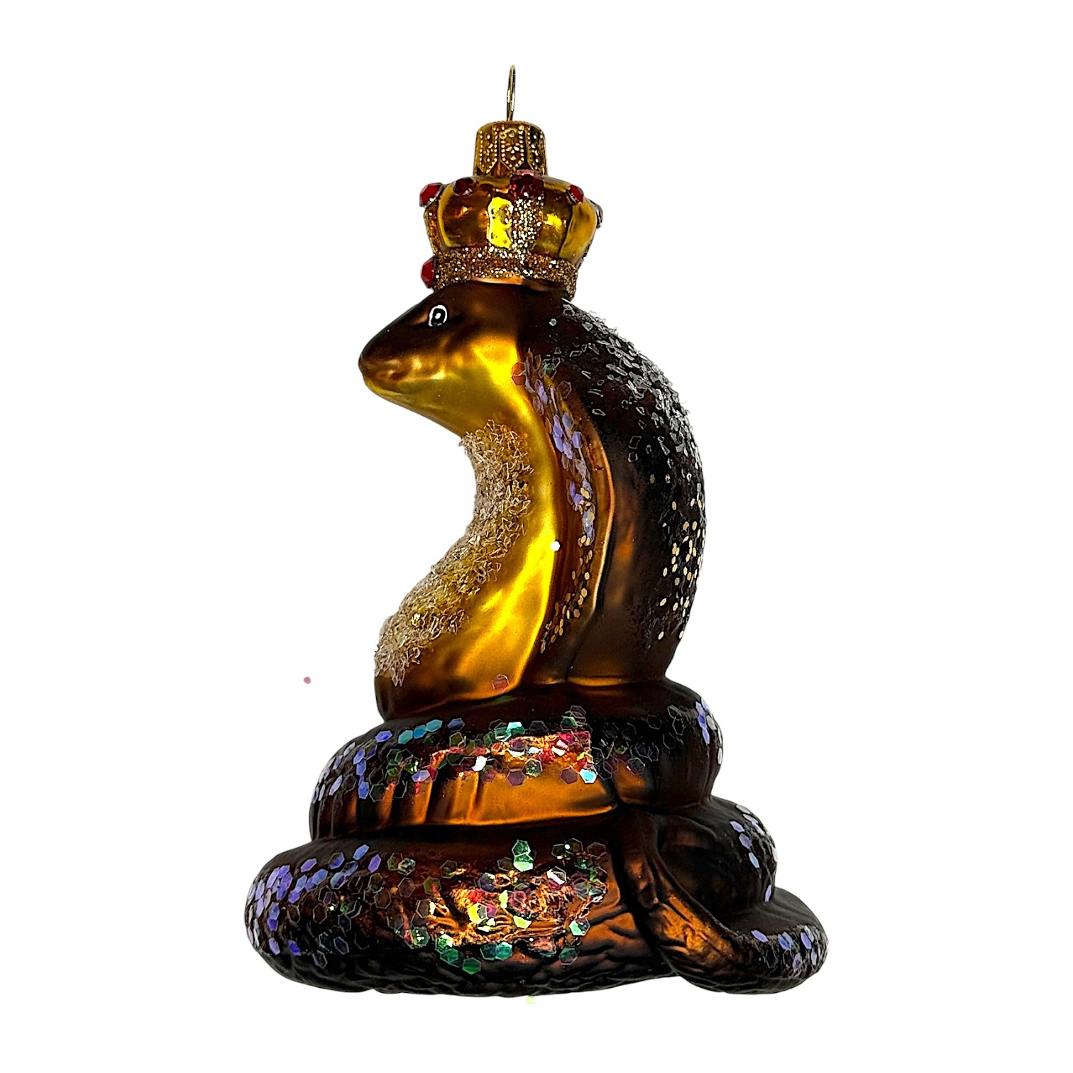 Een slang in de kerstboom! Handgemaakte glazen dieren voor de kerstboom. Breng een vleugje mysterie en kracht in je kerstboom met deze bijzondere glazen cobra kerstbal. De cobra symboliseert transformatie, bescherming en wijsheid en past perfect in een boom die net even anders mag zijn. Ideaal voor dierenliefhebbers, verzamelaars van bijzondere ornamenten of iedereen die houdt van een karaktervolle kerst.