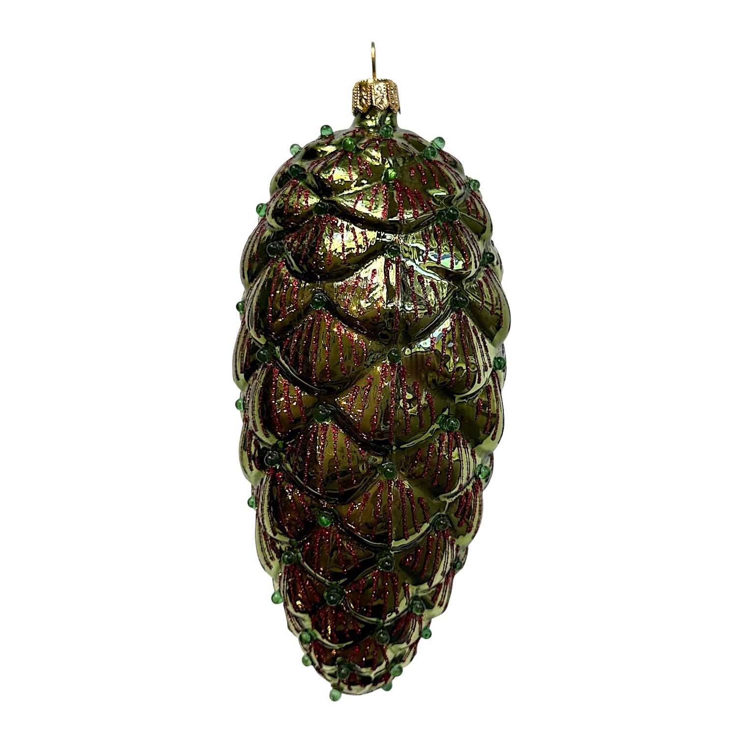 Dennenappel voor in de kerstboom! Een symbool van standvastigheid en groei. Versier je kerstboom met de klassieke charme van deze handgemaakte glazen dennenappel. Dit stijlvolle en elegante ornament is perfect voor iedereen die een voorkeur heeft voor traditionele, natuurlijke decoraties.