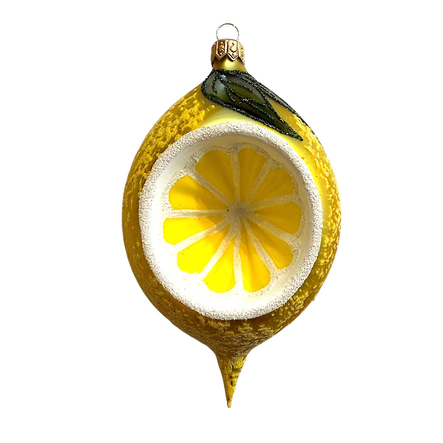 Citroen kerstbal. Kerstversieringen van prachtig dik en kleurrijk glas, met de hand beschilderd.