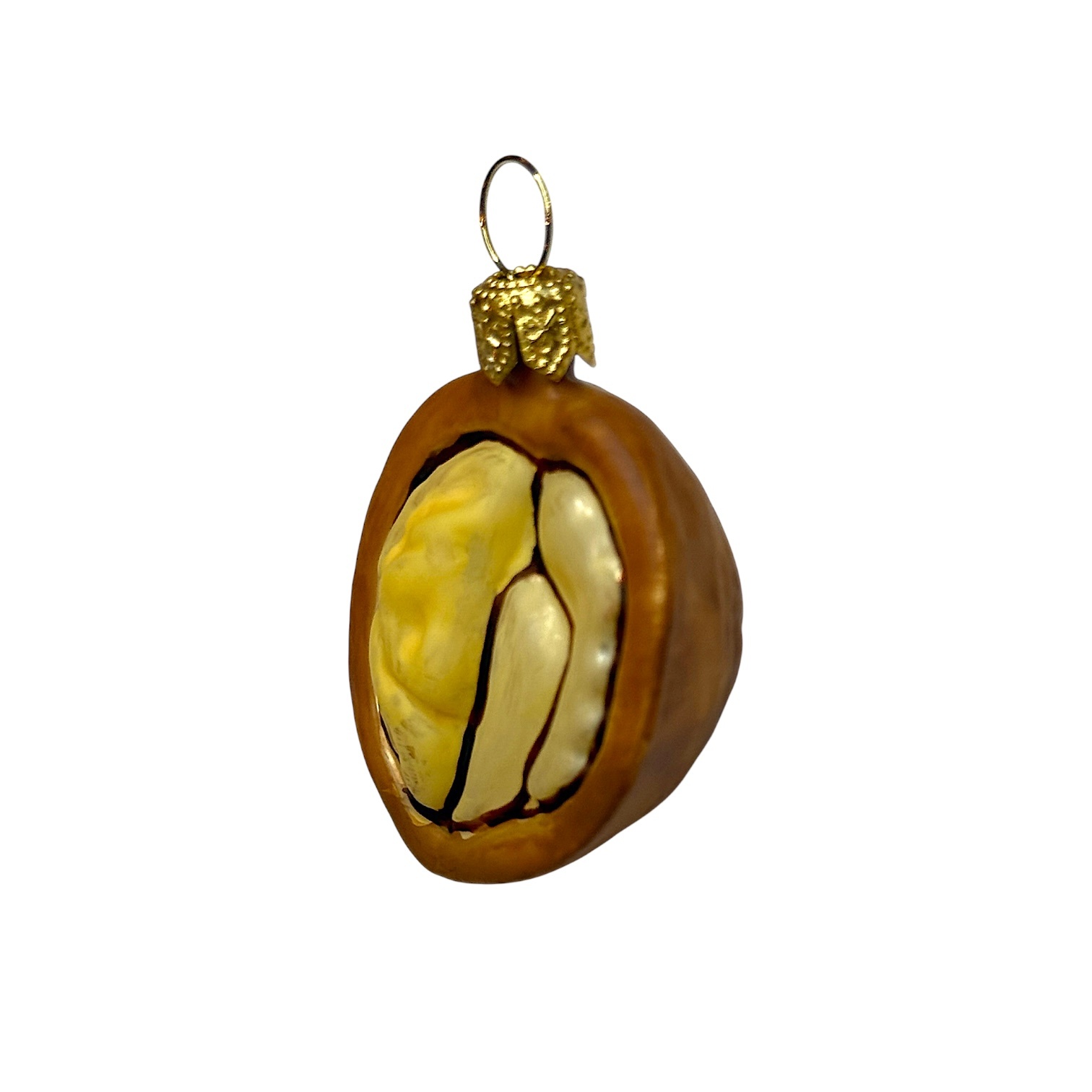 Walnoot in de kerstboom! Klassieke kerstballen voor een traditionele kerstboom. Een eerbetoon aan de kleine schatten van de natuur: deze mondgeblazen glazen walnoot vangt de rijke textuur en warme tinten van een echte walnoot. De walnoot staat al eeuwenlang symbool voor overvloed, wijsheid en winterse gezelligheid en is een geliefd motief in de traditionele Europese kerstversiering. Vervaardigd door vakmensen is elk ornament mondgeblazen en met de hand beschilderd – elk stuk is dus uniek. Perfect voor een natuurlijk versierde boom.