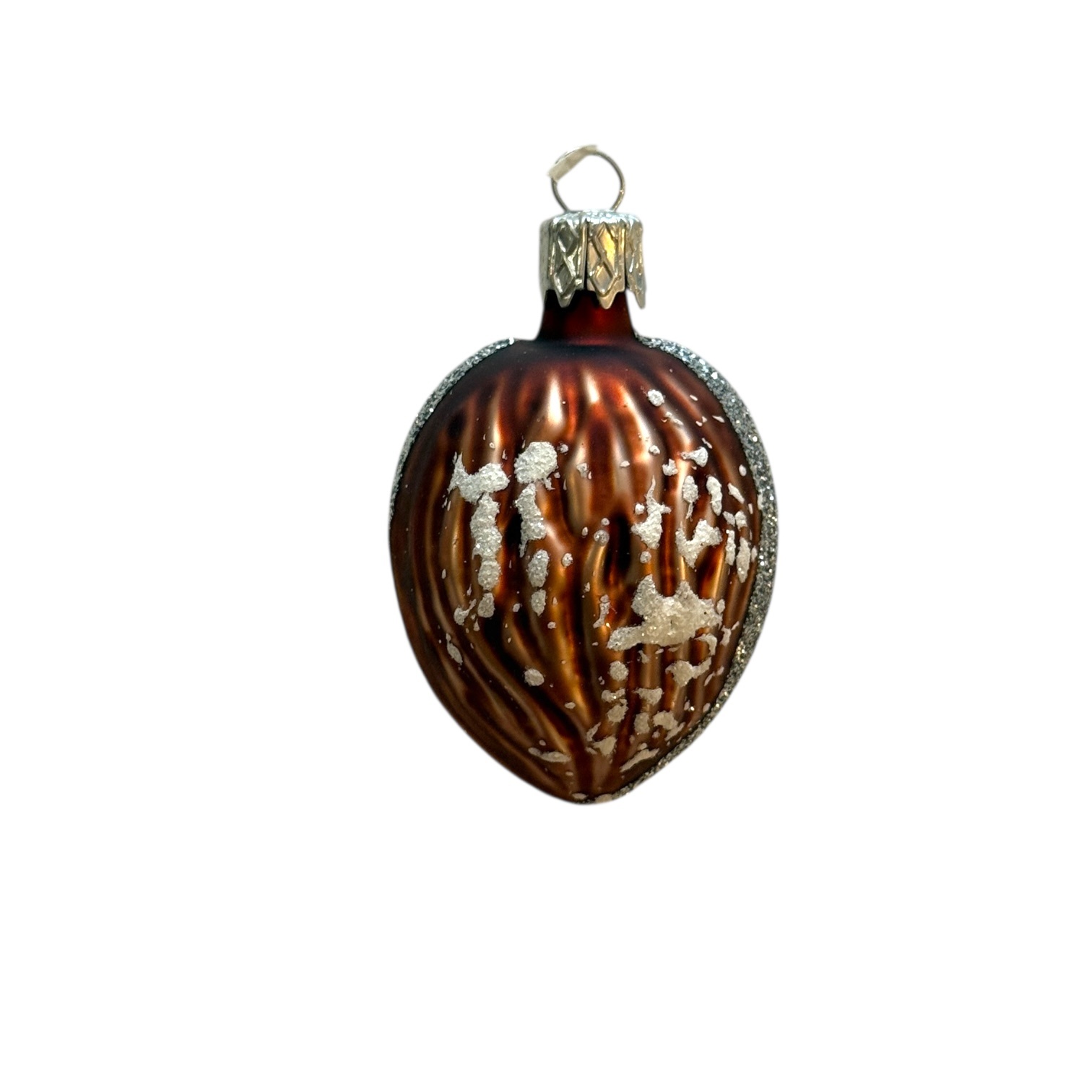 Dit kleine walnootje in warme bruintinten is subtiel bestrooid met een laagje 'sneeuw' – een sfeervol winters kerstornament dat knipoogt naar de oudste kersttraditie die er is. Al sinds de 17e eeuw hingen mensen echte noten in de kerstboom, als symbool voor vruchtbaarheid, geluk en hoop op voorspoed.