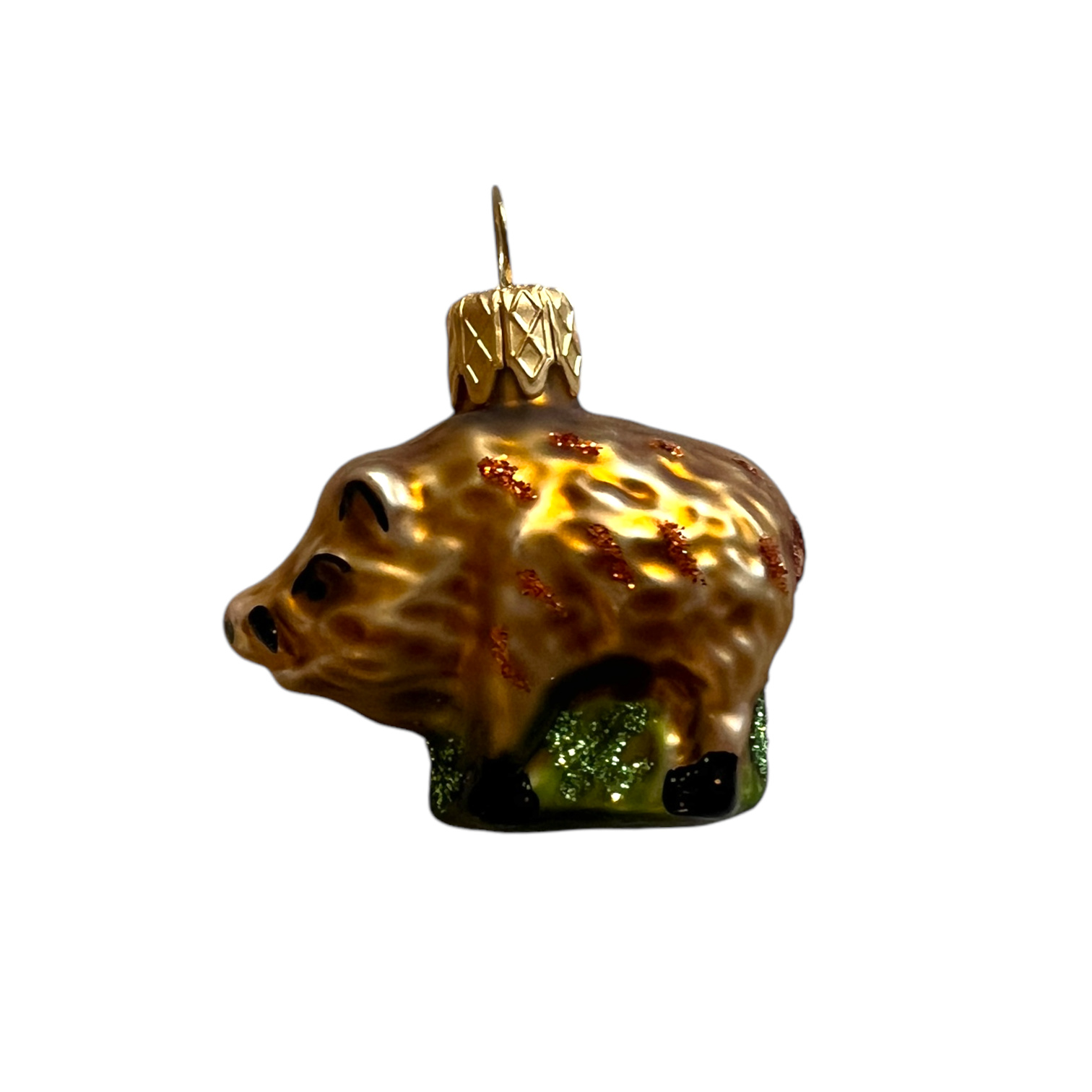 Dieren in de kerstboom! Deze mini kerstbal stelt een jong wild zwijntje voor – klein van stuk, maar vol karakter. Met zijn gestreepte vachtje en spitse snuit is het een liefdevolle weergave van het jonge everzwijn zoals je dat in het bos kunt tegenkomen. Een uniek en speels ornament dat perfect past in een boom met bosdieren of een natuurlijke kerststijl. Met de hand beschilderd en mondgeblazen in fijn glaswerk.